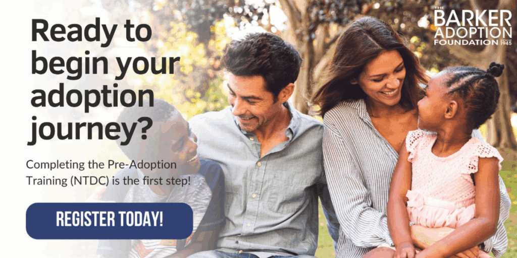 NTDC is a pre-adoption class that is required for families considering adoption through Barker. Families must be available to attend all 3 virtual sessions (September 6th, 13th & 20th 9-3pm) to receive a certificate of completion. In addition, one virtual program specific session is required.